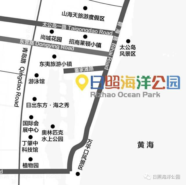 青島路→太公島一路→碧海路(南行1公里)→日照海洋公園