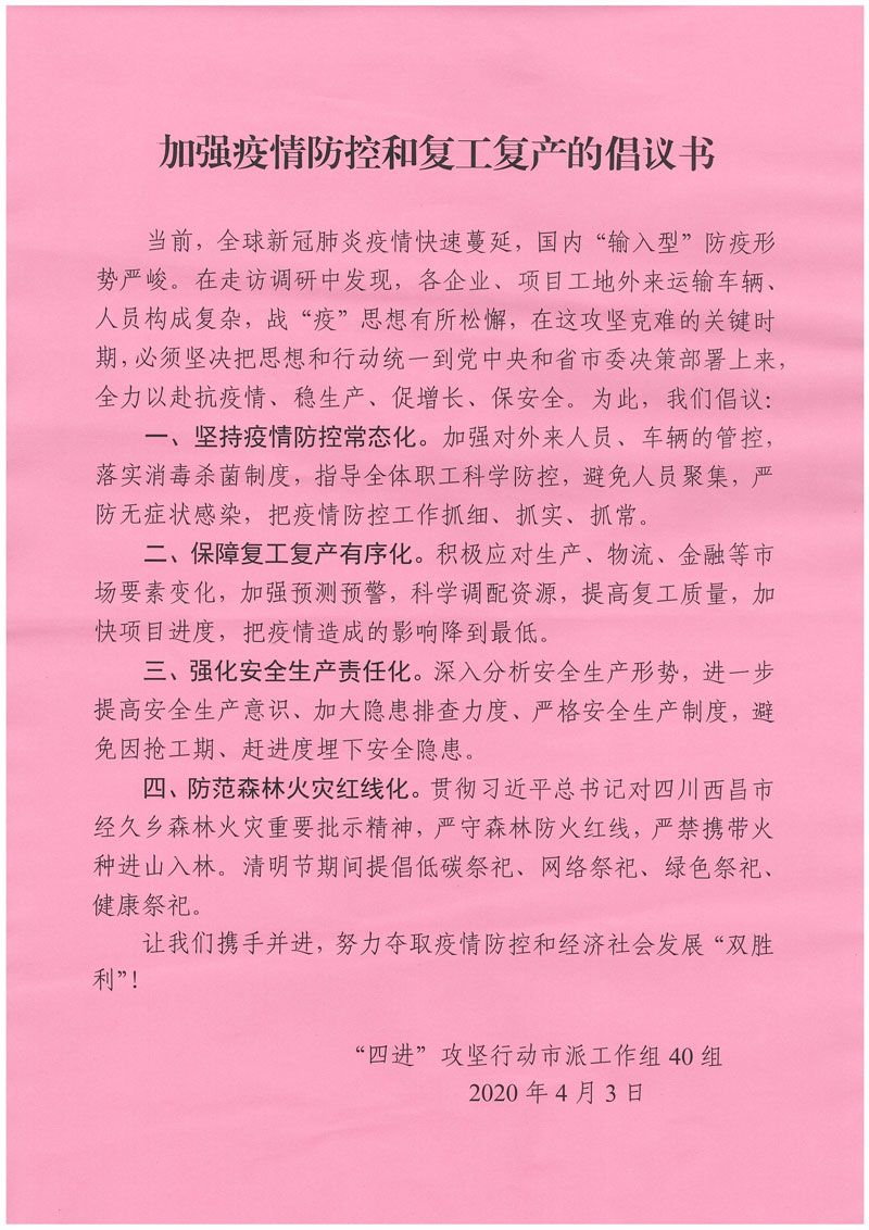 加強(qiáng)疫情防控和復(fù)工復(fù)產(chǎn)的倡議書