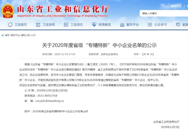 根據《山東省“專精特新”中小企業認定管理辦法》(魯工信發〔2020〕7號)、《關于組織申報2020年度山東省“專精特新”中小企業和對往年“專精特新”中小企業進行復核的通知》等文件精神,省工業和信息化廳組織開展了2020年度省級“專精特新”中小企業評選工作。經主管部門推薦、專家評審等程序,確定我公司為2020年度省級“專精特新”中小企業。